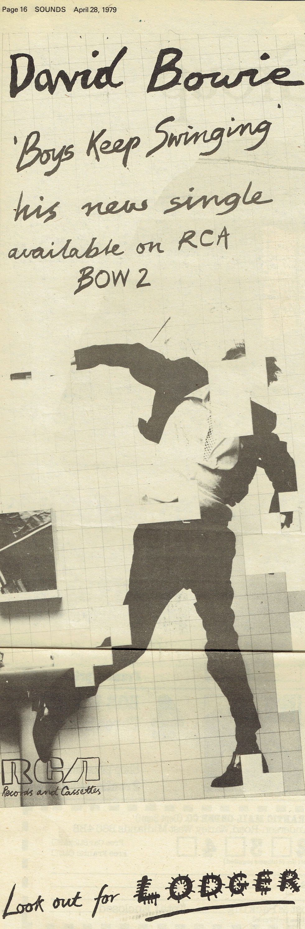 SOUNDS advert for David Bowie’s new single Boys Keep Swinging — April 28, 1979.
