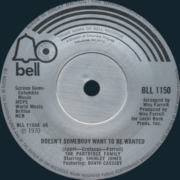 Released at the height of Partridge‑mania, “Doesn’t Somebody Want To Be Wanted” arrived as the follow‑up to the group’s massive debut hit, I Think I Love You carrying the polished pop sound of the TV series into another international single.
