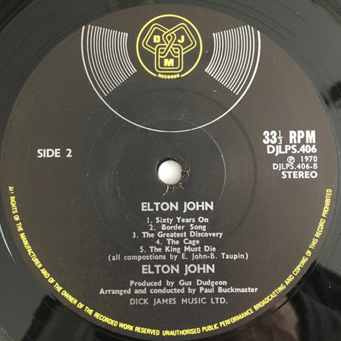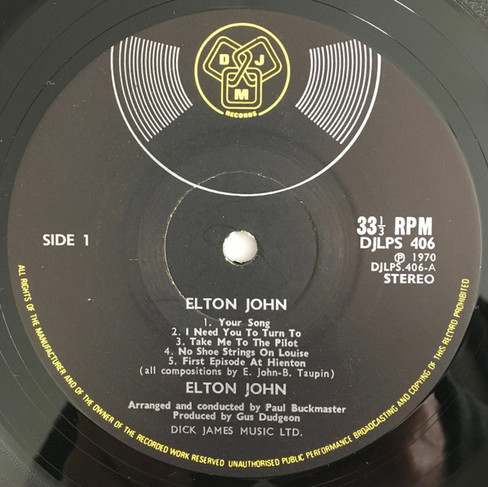 Released on April 10 1970 by DJM Records (DJLPS 406), the album arrived in a matte textured gatefold sleeve and featured translucent dark red/purple vinyl when held to strong light â a characteristic of Tranco Limitedâs pressing formula. Produced by Gus Dudgeon and recorded at Trident Studios, the album showcased Eltonâs emerging signature sound: orchestral pop, intimate piano balladry, and sweeping arrangements that elevated Taupinâs storytelling. âYour Song,â originally tucked modestly into Side A, would soon become one of the most beloved songs of the decade.