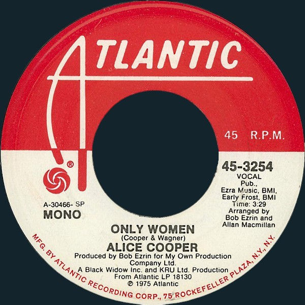 Released in March 1975 by Atlantic Records (45â3254), the single paired âOnly Womenâ with âCold Ethylâ in the United States. Outside the US, the Bâside was replaced with âDevilâs Food.â The single entered the Billboard Hot 100 on April 5 1975, spending sixteen weeks on the chart and peaking at No. 12 for two consecutive weeks. It also reached No. 1 in Canada, becoming one of Cooperâs biggest international successes.